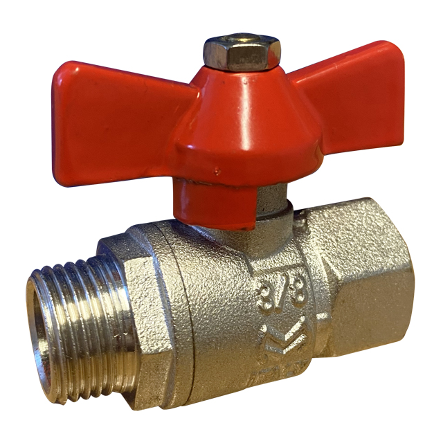 Brass Body, PN40 Rated, Screwed BSP Male x Female, Full Bore, Red Butterfly Lever.