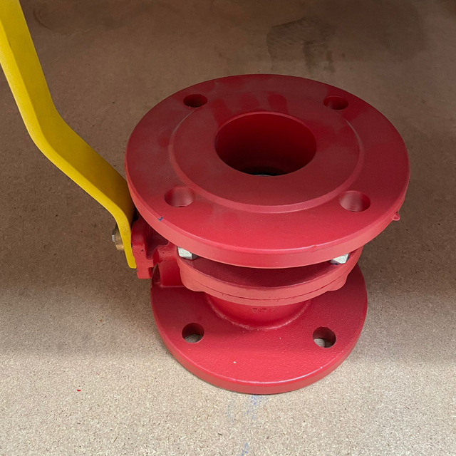Ductile Iron, Flanged PN16, Gas Use, Brass Ball & Stem, NBR O-rings, PTFE Seats, Red RAL3000 Coating, DIN3202 F4 Face to Face.